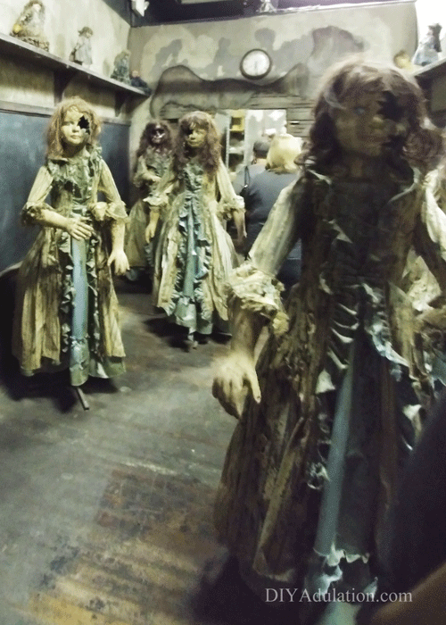 Horror is definitely their passion at Dent Schoolhouse and it shows. There is so much detail that they put into every room and they are constantly changing and improving the entire experience. What does that mean for you? It means that even if you visit Dent Schoolhouse every year, you will have new horrors and new themes to experience. In our hour and a half tour, I took hundreds of photos and still wanted to take hundreds more. Below are just a few of the awesome creations I say but it all adds up to one heck of a haunted house experience.